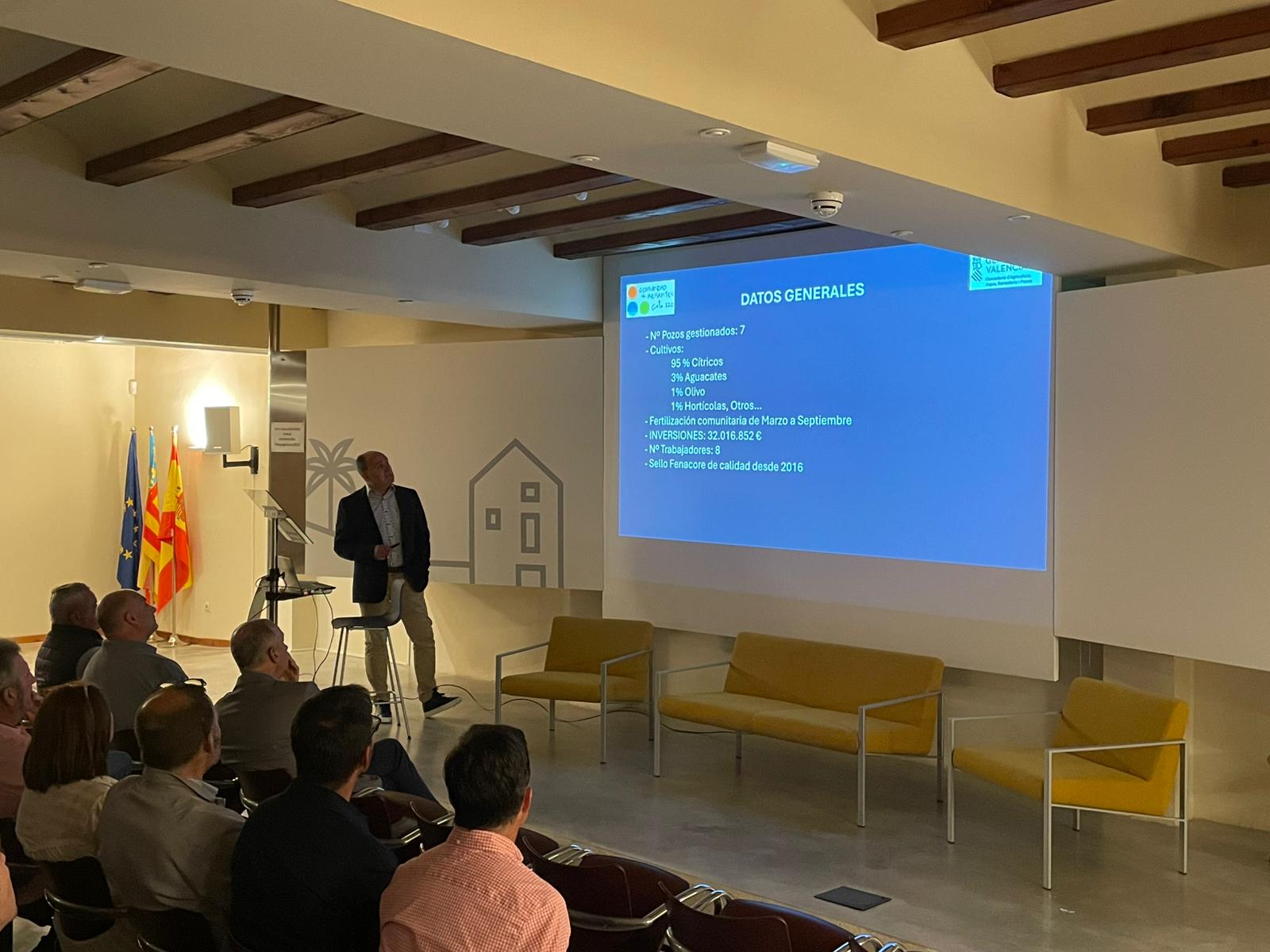 Además, se contó con la asistencia y participación de José Alfonso Soria, presidente de FECOREVA; Óscar Pagés, jefe del Servicio de Regadíos; Lourdes Pérez, directora general del Agua; y Miguel Barrachina, conseller de Agricultura, Agua, Ganadería y Pesca; entre otros.