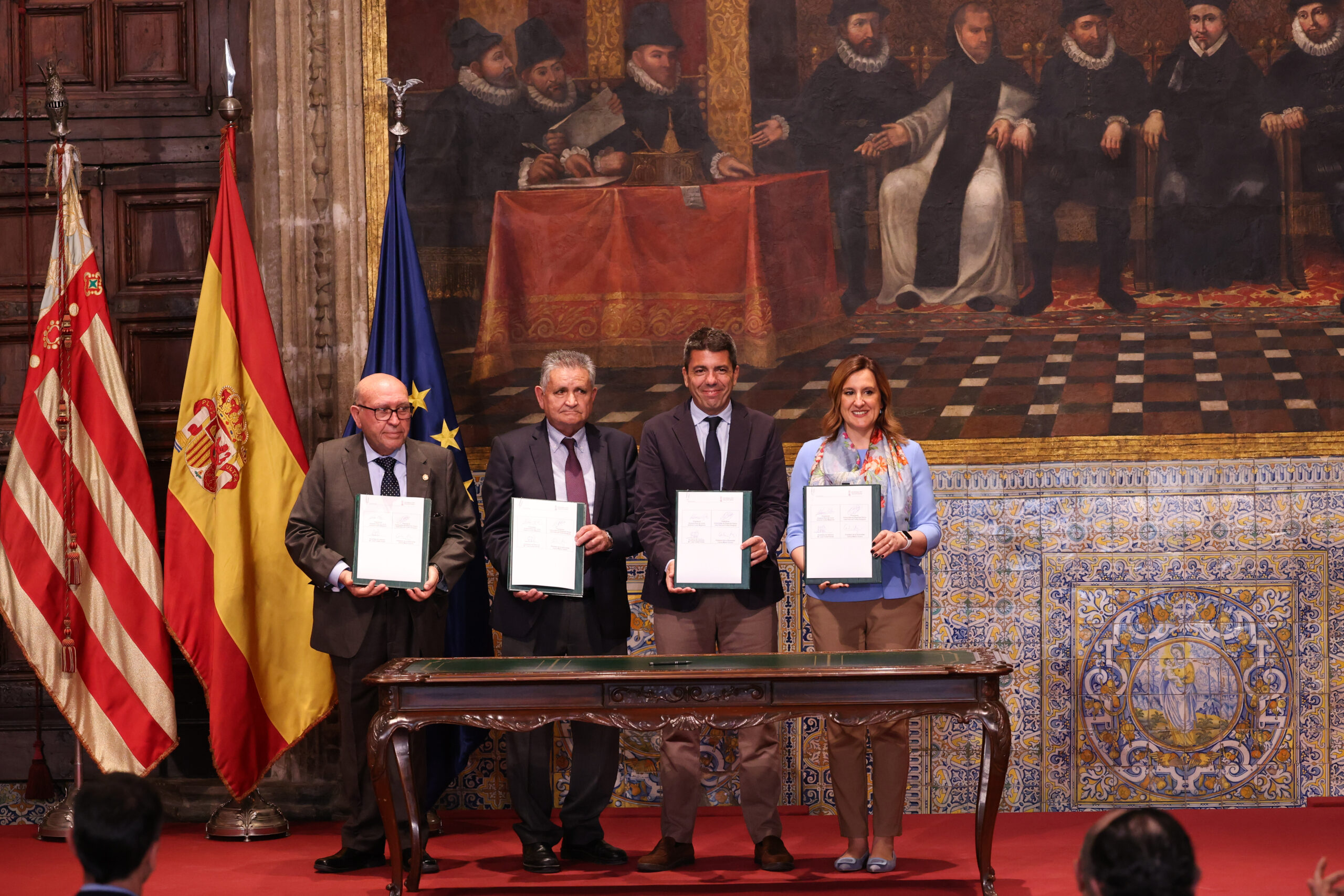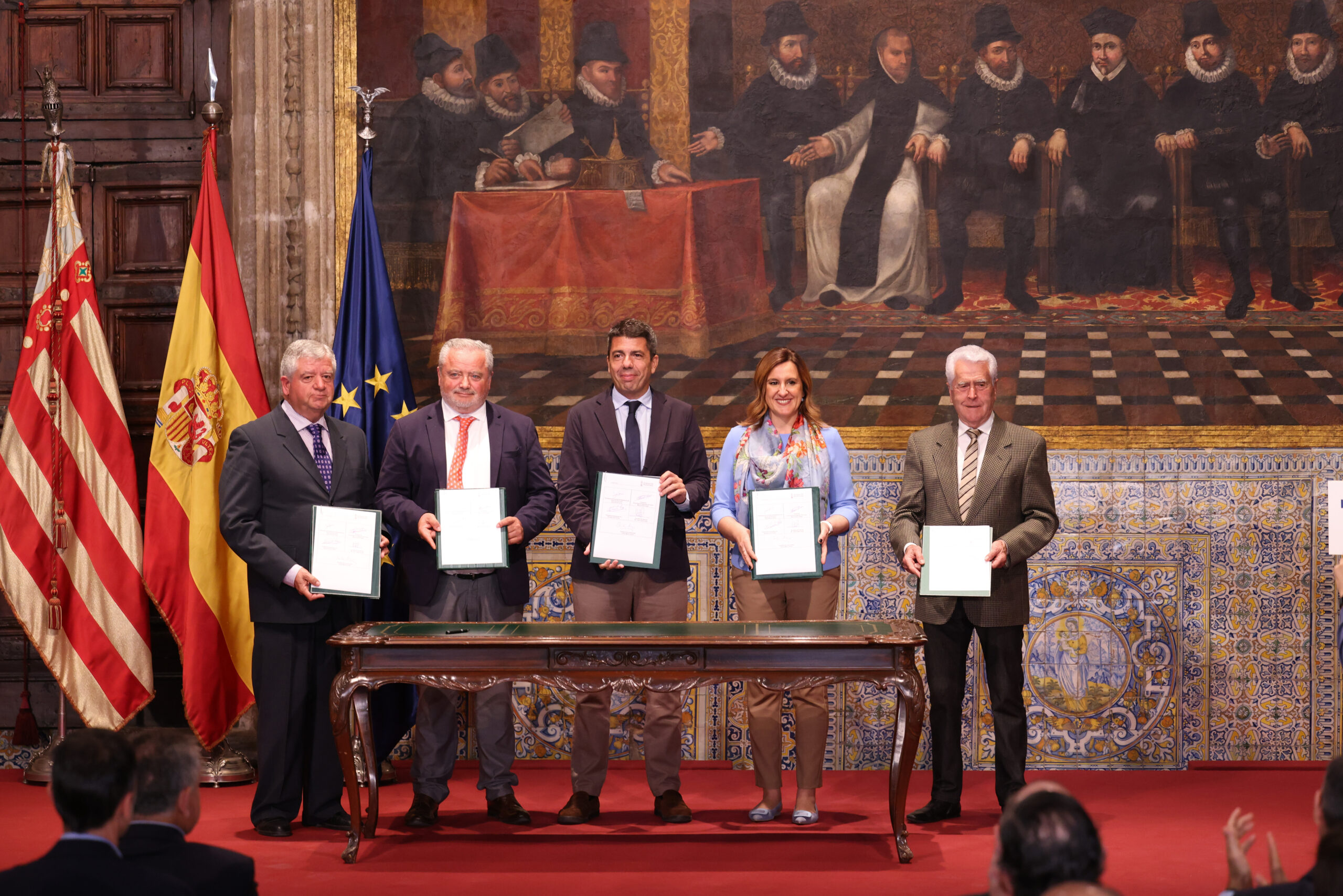 El acto de firma ha tenido lugar en el Palau de la Generalitat Valenciana en Valencia y ha contado con la participación de Carlos Mazón, president de la Generalitat, Mª José Catalá, alcaldesa de Valencia y los miembros de FECOREVA José Alfonso Soria, presidente de la Junta Central de Usuarios del río Turia, Manuel Ruiz, presidente de la Comunidad de Regantes de la Acequia de Favara, Salvador Arce, presidente de la Comunidad de Regantes de la Acequia del Oro, Antonio Costa, presidente de la Acequia Real del Júcar y José Pascual Fortea, presidente de la Comunidad de Regantes de Sueca.