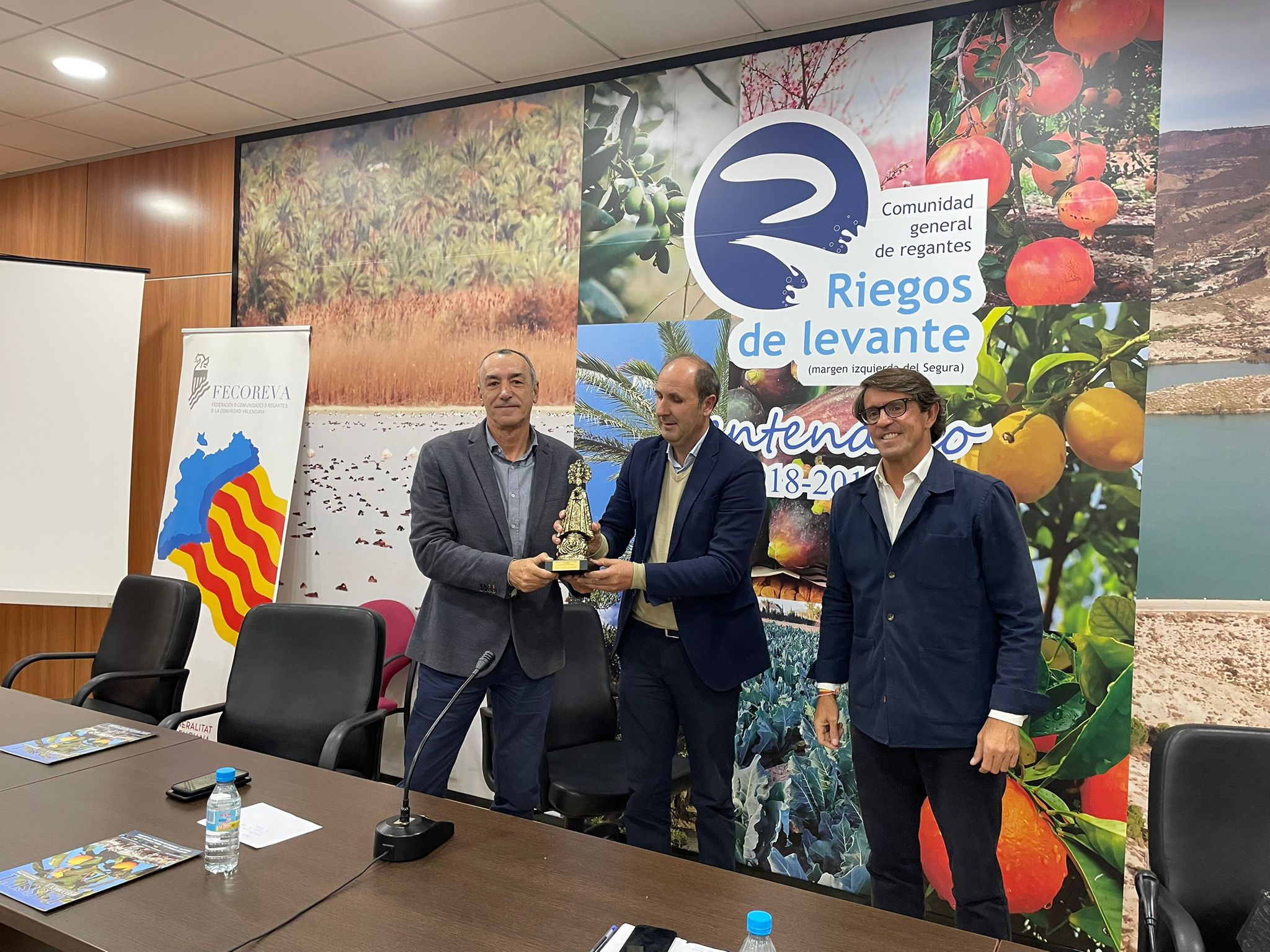 Además, cabe destacar que, al final de la jornada, la C.G.R. Riegos de Levante Margen Izquierda del Segura quiso reconocer a FECOREVA haciéndole entrega de una imagen la Virgen de la Asunción, patrona de Elche, por su labor y papel destacado dentro del mundo del regadío actual.