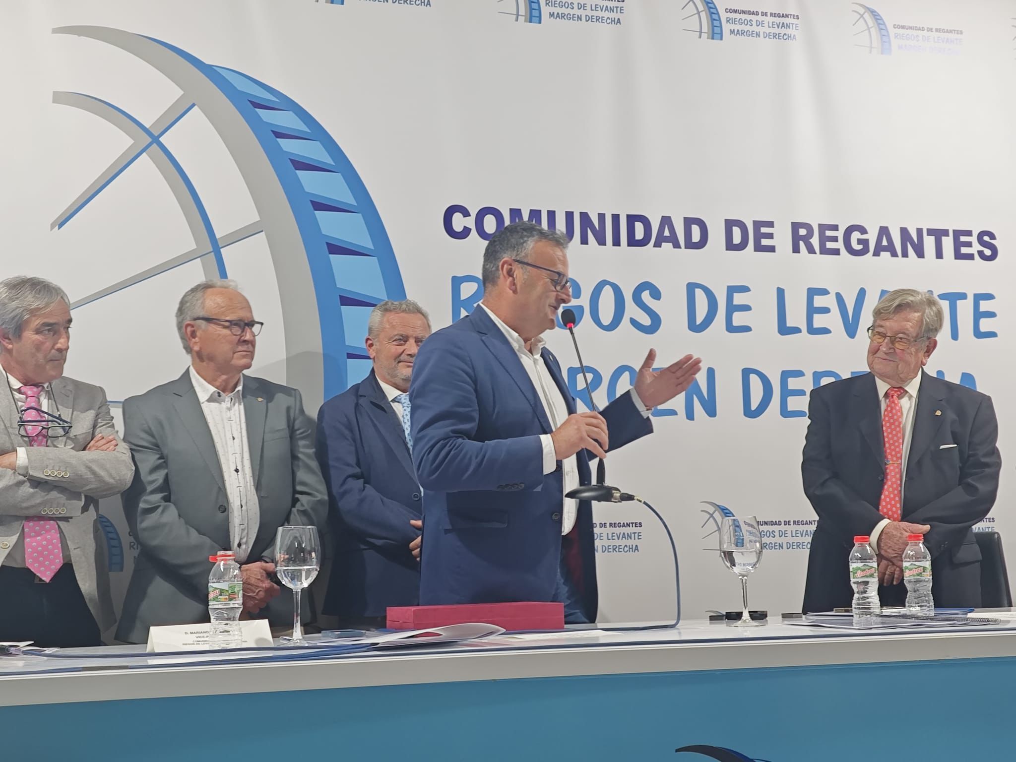 La Comunidad de Regantes Riegos de Levante Margen Derecha del Segura ha impuesto su medalla de honor a José Alfonso Soria García, presidente de la Federación de Comunidades de Regantes de la Comunidad Valenciana (FECOREVA); Salvador Marín Ortega, vicepresidente de la federación; José Bernabé Sáez, juez del Juzgado Privativo de Aguas de Orihuela; y Ana Iluminada Serna García, vicepresidenta de la Diputación de Alicante, en reconocimiento a su compromiso y trayectoria en defensa del regadío y de la gestión eficiente del agua en la provincia de Alicante y en el conjunto de la Comunitat Valenciana.